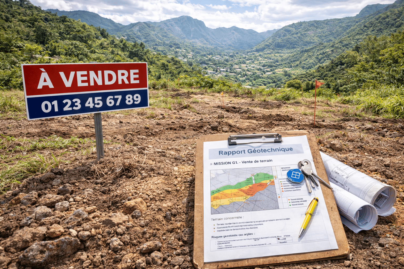 À La Réunion, de nombreuses zones sont concernées (zones d’aléa moyen à fort). Cette étude doit être annexée à la promesse de vente ou à l’acte authentique chez le notaire. Elle protège le vendeur en informant l’acquéreur sur les caractéristiques générales du sous-sol (argiles, nature volcanique, présence d’eau).